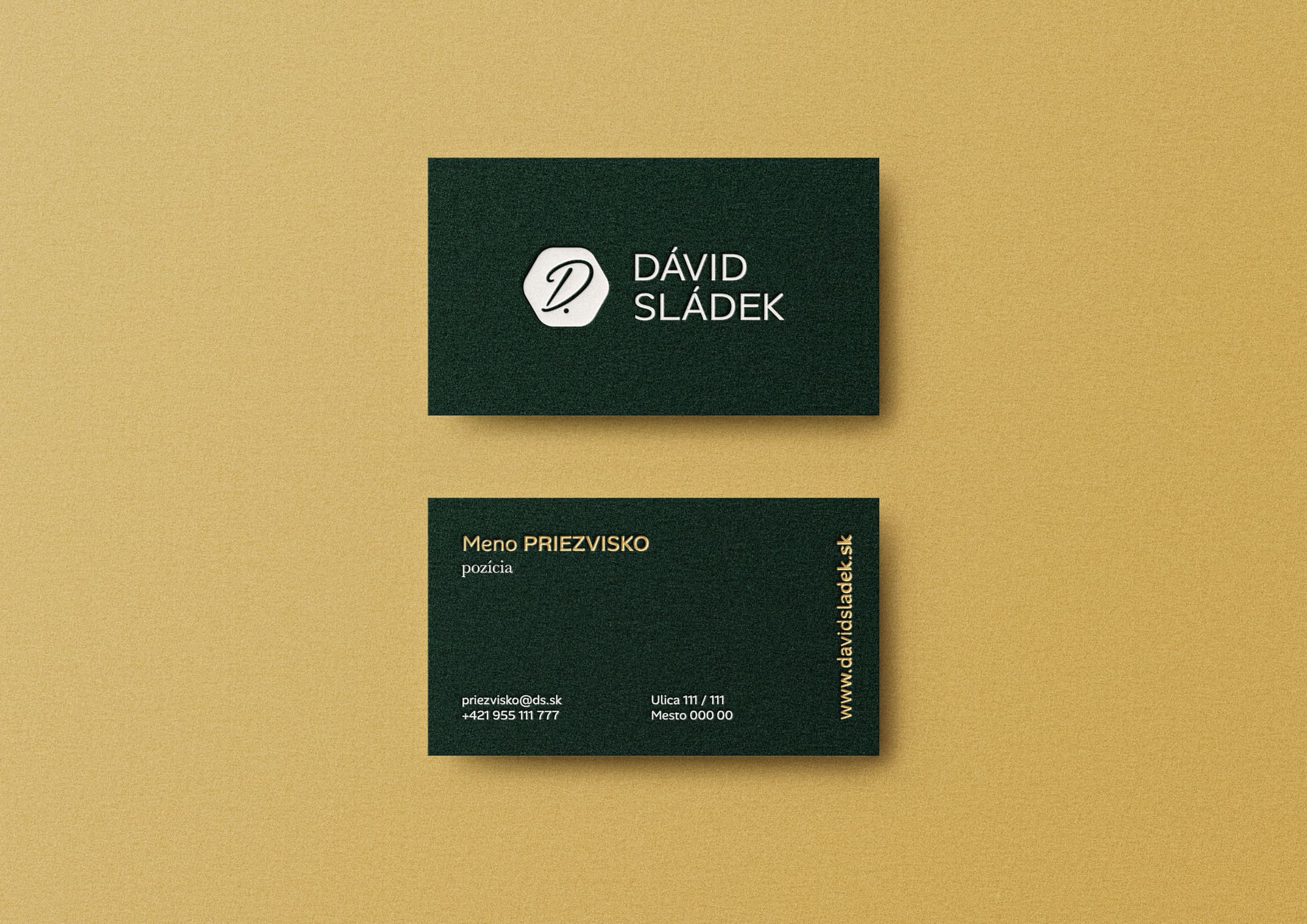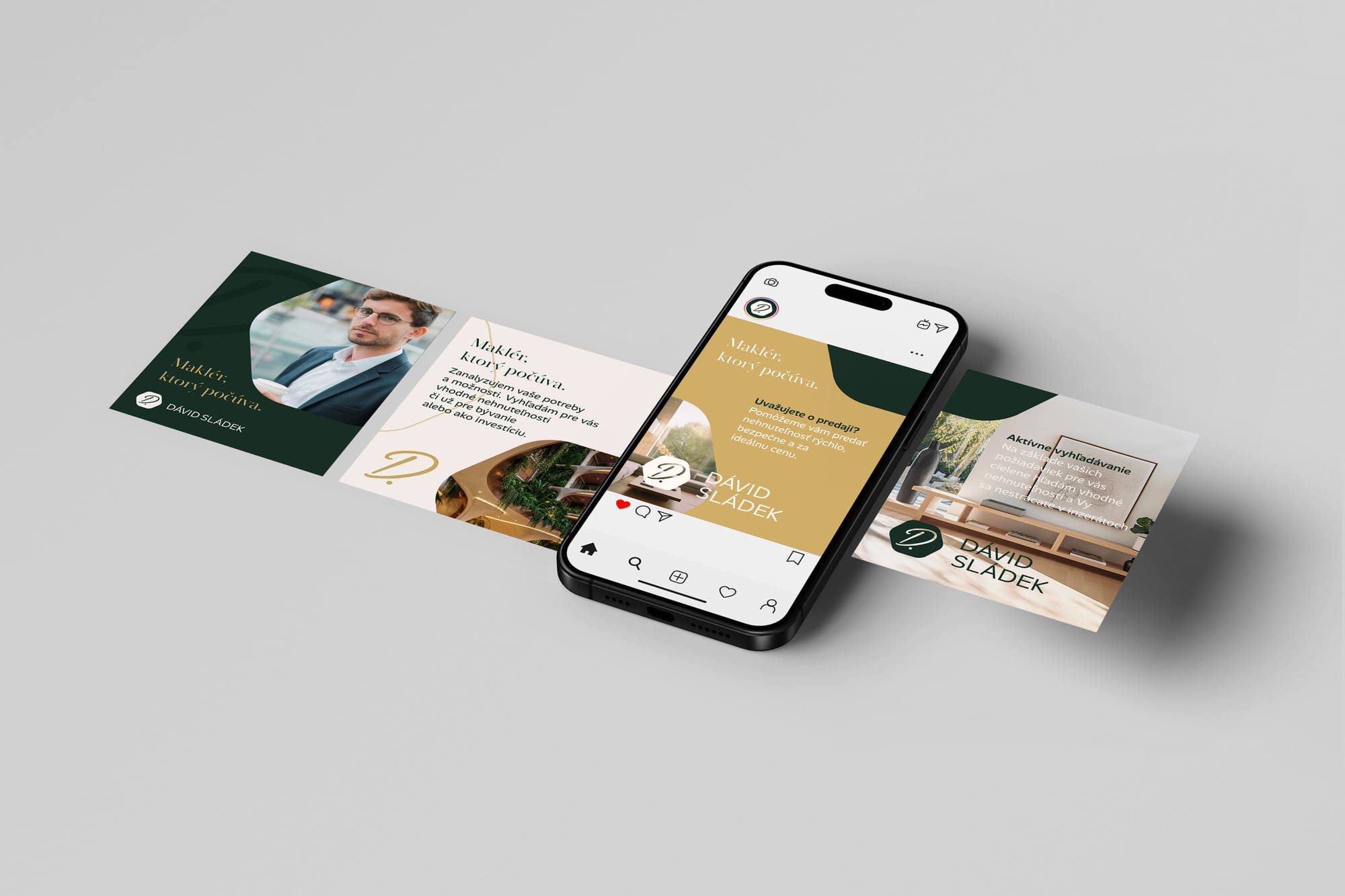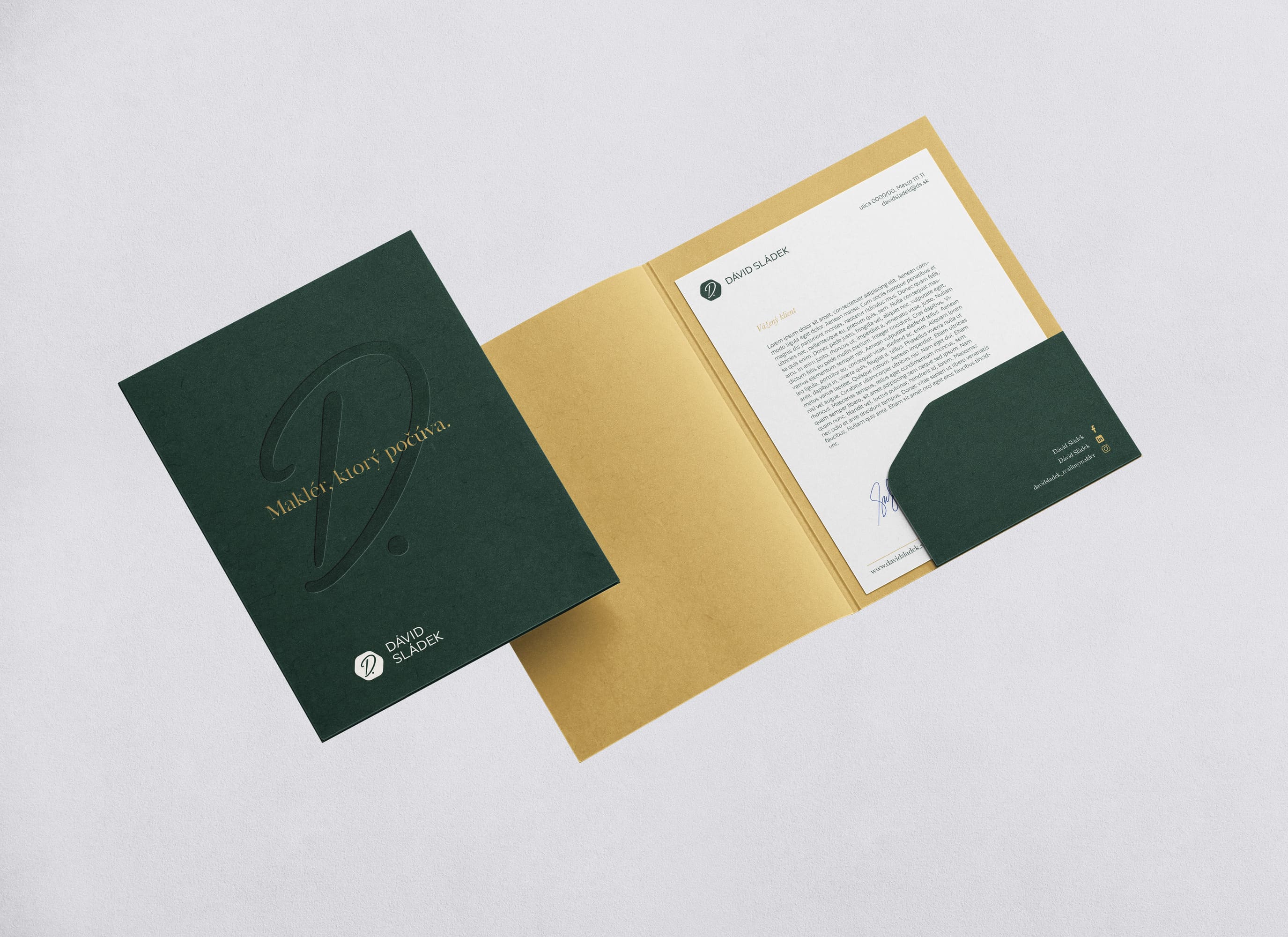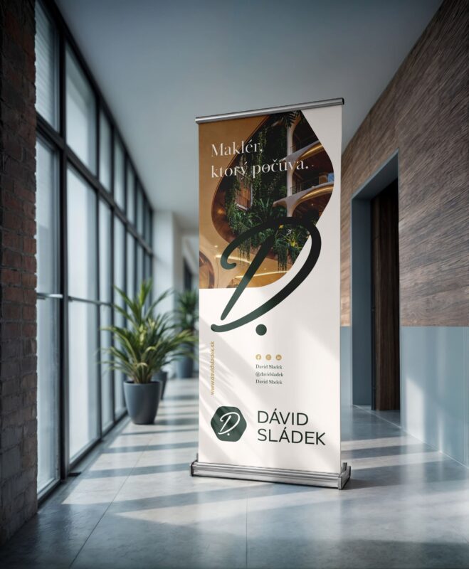 Pre realitného makléra Dávida Sládka sme vytvorili osobný branding postavený na ručne písanom písmene D. Tento prvok prináša do loga ľudskosť a osobný prístup. Symbol je umiestnený v jednoduchom tvare, aby identita pôsobila moderne a čisto.