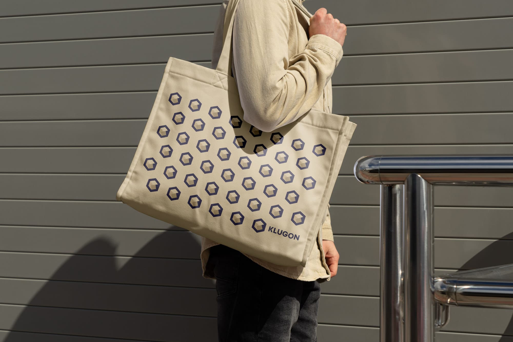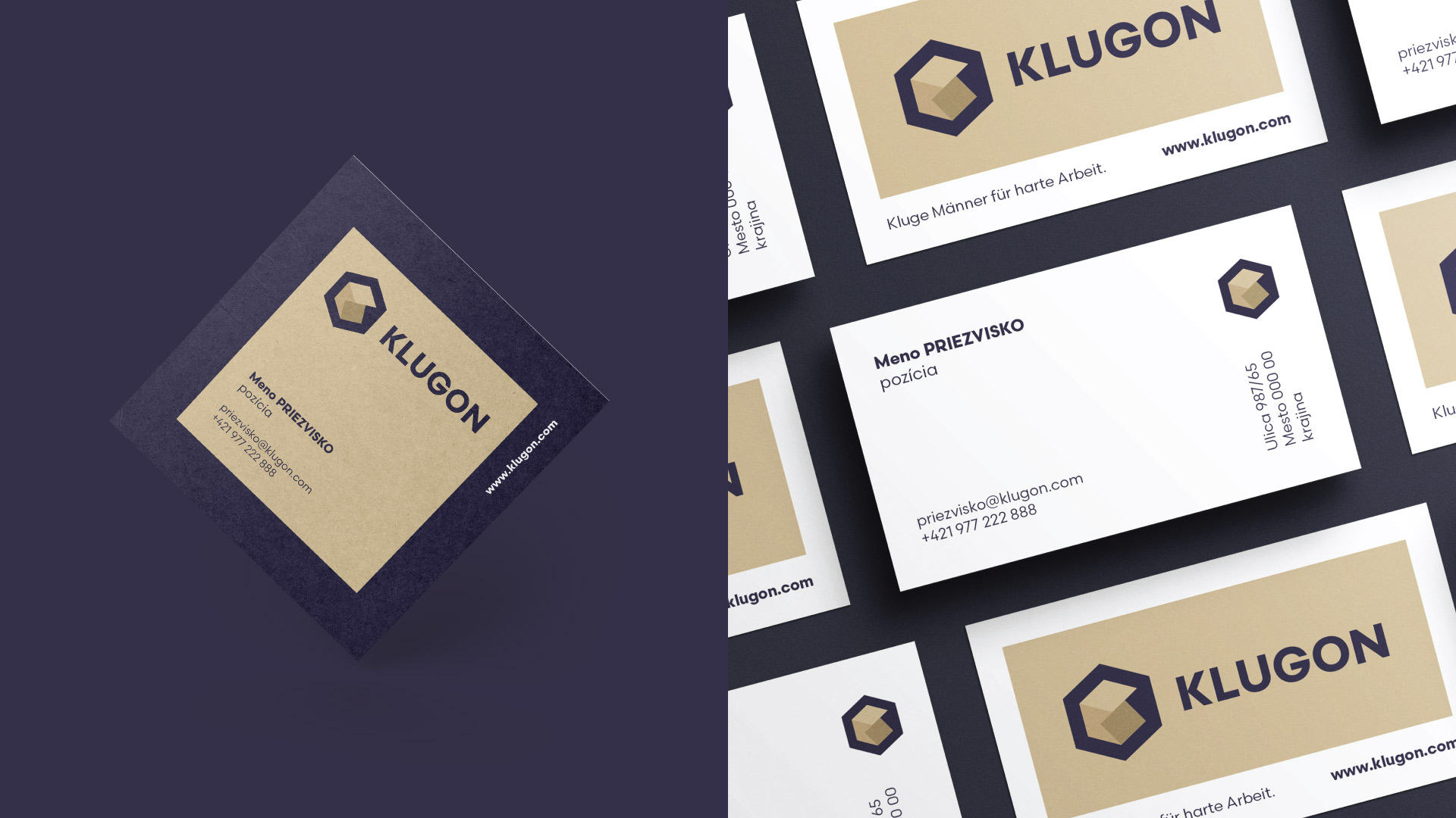 Pre nemeckú firmu KLUGON, ktorá dodáva šikovných pracovníkov na projekty, sme vytvorili názov aj branding. Názov spája slovo KLUG, čo v nemčine znamená šikovný, a ON, teda zapnutý pripravený pracovať. Symbolom značky je šesťuholník pripomínajúci pracovité včely, v ktorom je ukryté písmeno K. Logo tak spája inteligenciu, pracovitosť a systém.