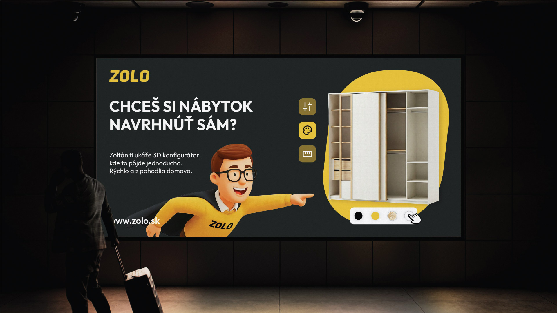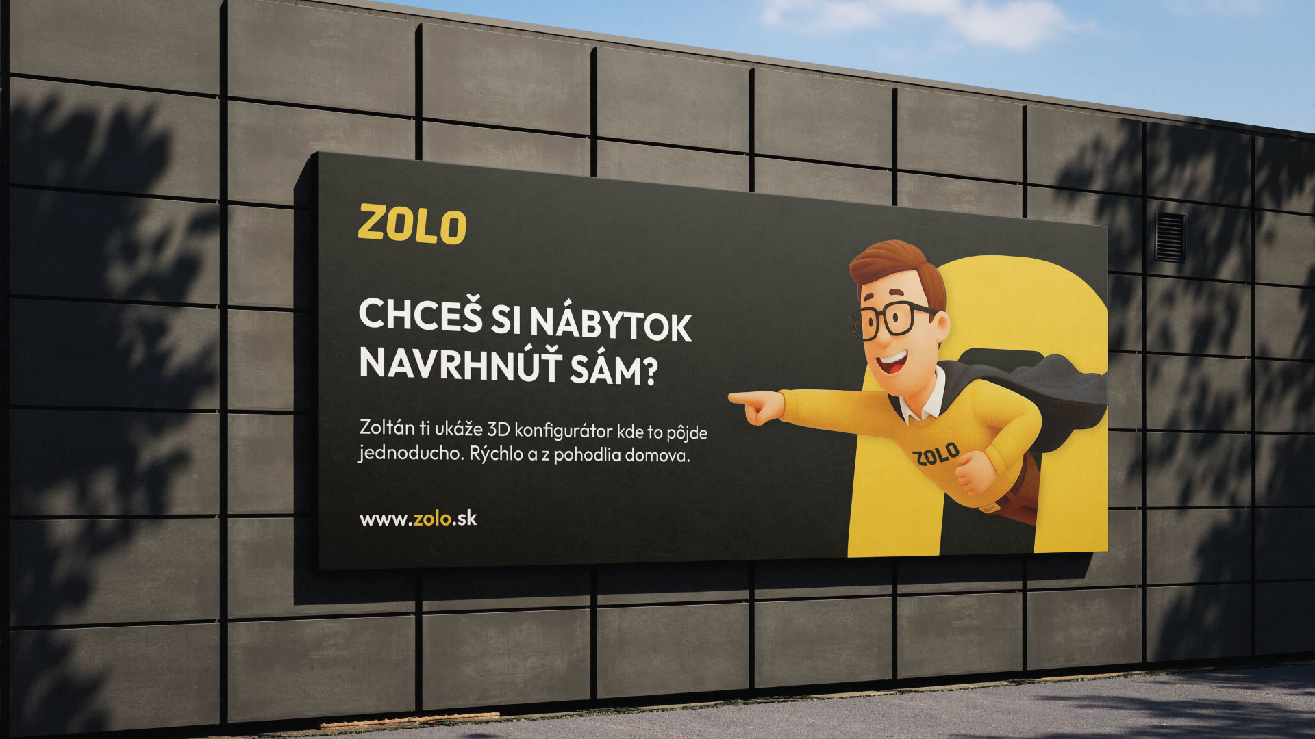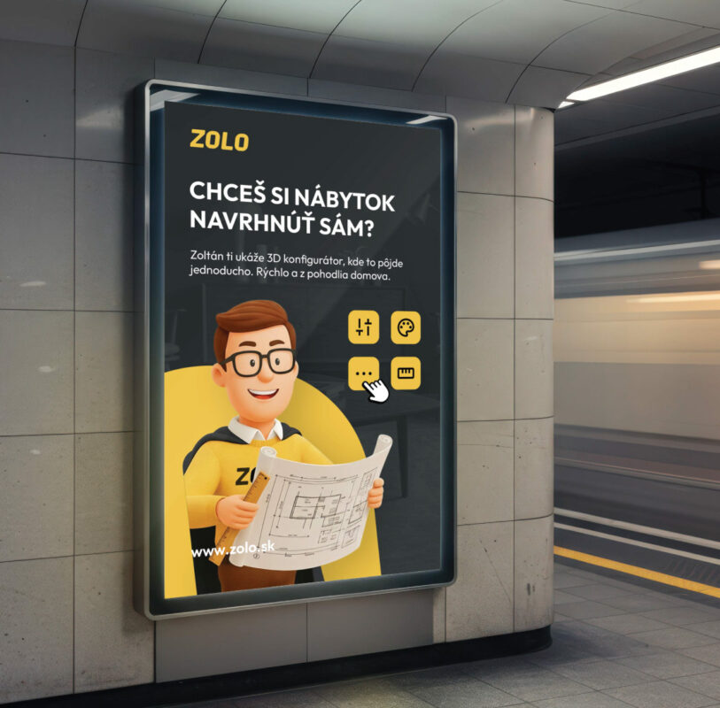 Pre značku ZOLO, ktorá pripravuje drevotriesku pre výrobcov nábytku po celej Európe, sme vytvorili branding a 3D maskota s menom Zolo. Zolo je postava, ktorá symbolizuje prehľad, pomoc a spoľahlivosť v procese výroby. V komunikácii vystupuje ako správny chlapík, ktorý vždy poradí a ukáže riešenie. Identita stojí na výraznej žltej farbe a jednoduchej typografii ZOLO, ktorá je jasná a zapamätateľná.